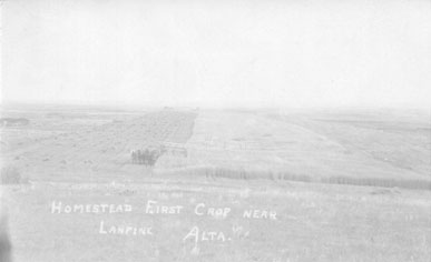 Homestead first crop near Lanfine, Alberta, Canada - Mounted on Postcard Stock