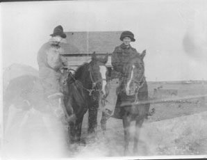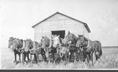Charles Belden Belden probably moving the granary on his Alberta Farm with a team of seven horses