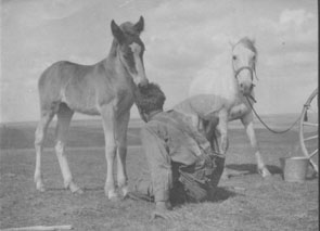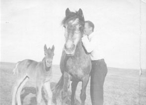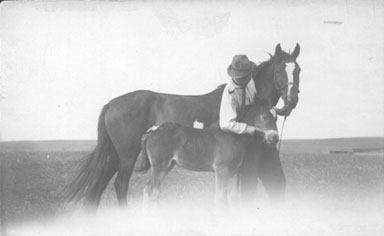 Horse tied to Wagon wheel and Horse Kitty nuzzling Selden Belden, Same as PH-79