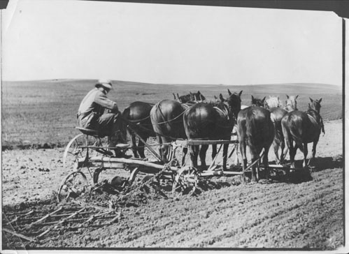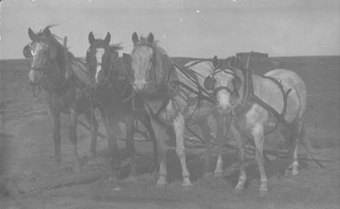 Horses Buck, Mary, Sis, & ? with Will Belden standing in Rear
