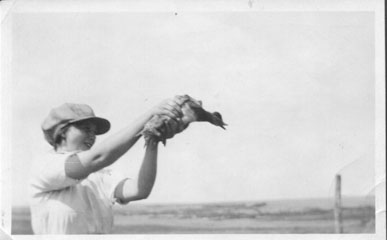 Coral Phoebe Fowler Belden washing up while camping halfway from Calgary to Chinook, Albert Canads, July 1918